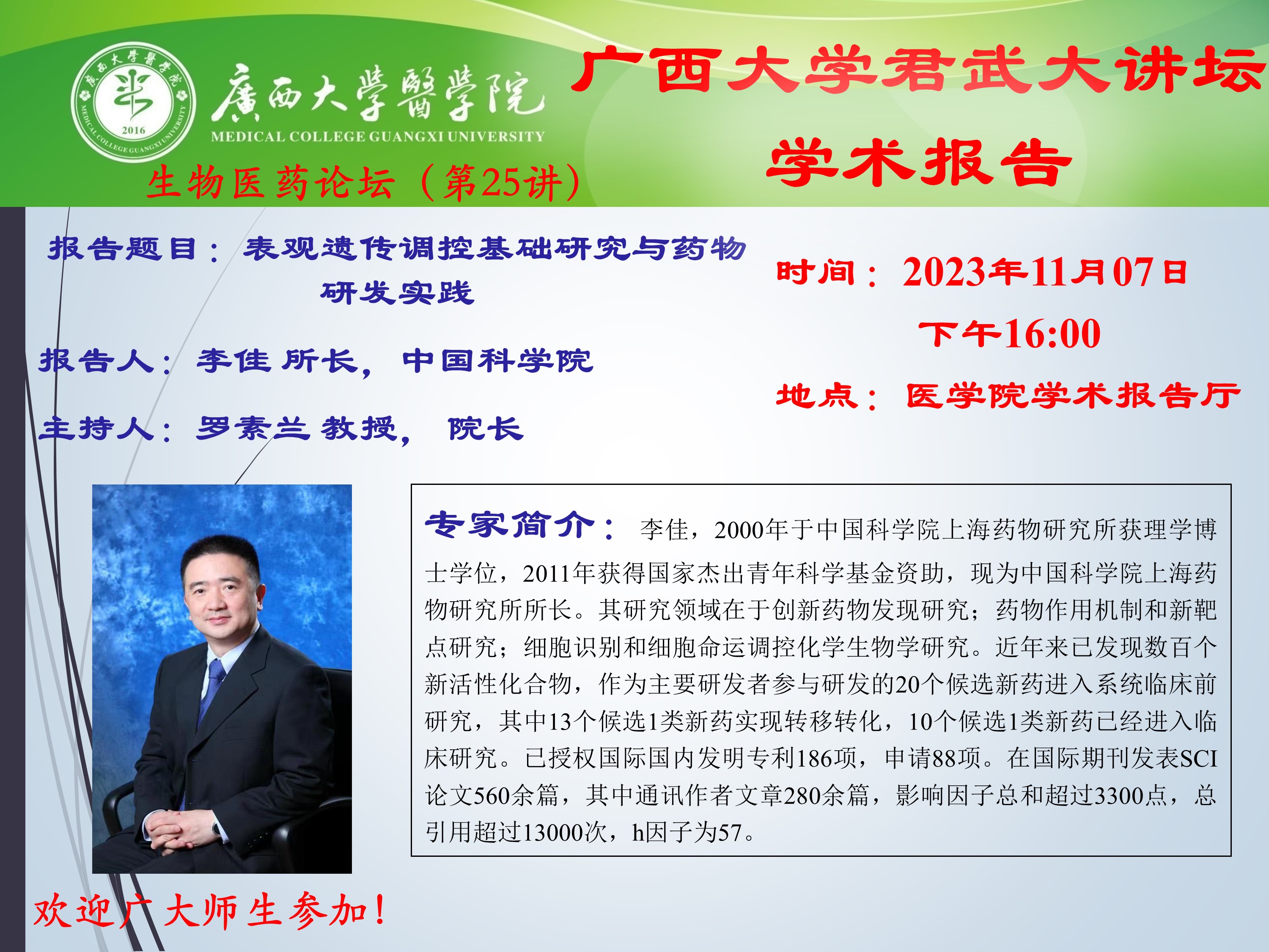 yl23411永利集团官网君武大讲坛之yl23411永利集团官网生物医药论坛(第25讲)